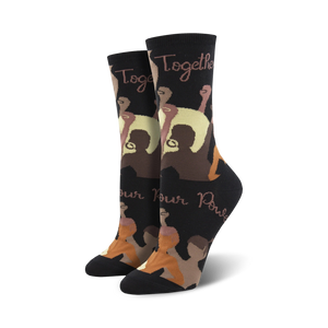 From the streets to your feet, Know Your Power socks feature black crew socks with brown and tan hands with Afro hairstyles, reminding you of the strength and unity we have when we embrace individuality and work together. Let the brown text spelling out "power" on one sock and "together" on the other act as a motivator that even in the toughest of times, unity has the power to overcome obstacles. Stand tall and embrace the energy of power and togetherness with these inspirational socks!