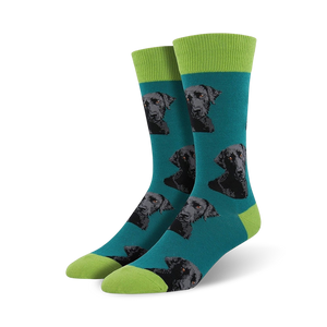 Be a good boy and fetch me an awesome pair of these Labrador Retriever socks. Show me the lab-or of your love! Each fun pair of these well behaved socks will have you giving paw. They come in a vibrant green hue and feature a pattern of Labrador heads all over, eager for a good petting!