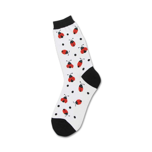 Ladybugs! Ladybugs crawling up your shins! Okay, not literally, silly, but these cute little red beetles with black spots are crawling up your socks! Wear these whimsical ladybug socks any day of the week to add a little brightness and joy to a gloomy day or to make an already fun day even more spectacular.