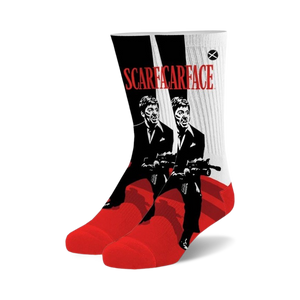 Last Stand socks: the perfect blend of iconic cinema and vibrant design. With Tony Montana's steely gaze and the classic Scarface logo, these socks add a pop of 80s swagger to any outfit. Whether you're facing a metaphorical mountain of paperwork or a literal mountain of laundry, these socks have your back. Put on your Last Stand socks and let the G.O.A.T of crime films keep you inspired, motivated, and stylish. Available for both men and women, these socks are the perfect way to add some edge to your sock drawer.