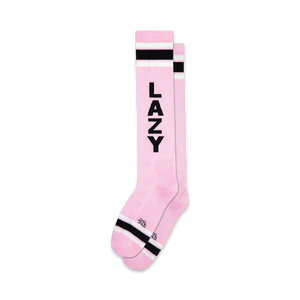 Introducing 'Lazy': the knee-high XL sock designed for men and women with a striking combo of pink fabric and black stripes. These socks are not just any basic socks - they're a pop of fun that'll make you the life of the party! When you wear these socks, you become the epitome of cool and comfort, showing the world that being lazy never looked so good. Get ready to turn heads wherever you go, because these socks are sure to make a statement. Life is short so put your feet up, relax, and let 'Lazy' socks do the talking!