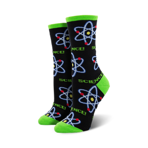 Get ready to geek out over these rad Lemme Atom socks that'll make your feet the epicenter of science fashion! Featuring a constellation of atoms with a nucleus that reads "Science," and three red electron rings and two blue ones, these socks are bound to cause a reaction wherever you go. Let your feet explore the wonders of the microscopic world in these cosmic crew socks. They're the perfect way to add some fun and education to your everyday wardrobe.