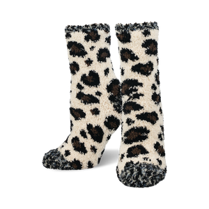 These fuzzy socks feel like a warm hug for your feet. Get leopard print fuzzy socks with a whimsical pattern that includes the toes and heels. They're as cozy as they are cute, with a design that could make a leopard purr.