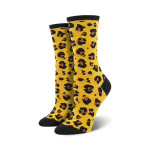Show your wild side with our Leopard Print Crew Socks! These socks are perfect for bringing a touch of fun and fierceness to your everyday look. The vibrant yellow color with the classic black leopard print creates a bold and eye-catching statement. Plus, they're made with ultra-soft fabric that feels like walking on clouds. Get ready to prowl the streets in style and comfort!