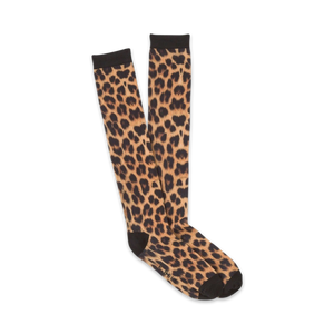 Snuggle up you jungle kitten you! This ferocious pair of knee high socks will have you purring throughout the day and looking stunning. Each cool sock features an all over leopard print pattern with a black heel, toe, and cuff. Purrfect for when you want to spice up your wardrobe with wild intent.