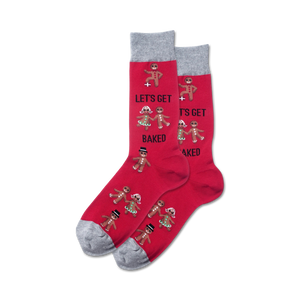 Adorned with rows of jubilant gingerbread people baked into a soft red sock, these festive treats say "Let's Get Baked" as they go marching along your feet. Whether you're whipping up holiday cookies, prancing through a winter wonderland, or just craving a sugar rush, these edible-inspired socks are sure to add a dash of holiday cheer to your feet.