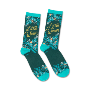 Even Little Women need something cozy and flowery to tuck their feet into! These comfy and colorful socks feature an all-over pattern of small floral bouquets. Each bouquet is unique, with petals in various shades of mint green, dark blue, and gold, set against a dark teal background. Unfortunately, the socks won't make you a better author like the famous literary characters, but they might inspire your creativity next time your tootsies need a little break from writing!