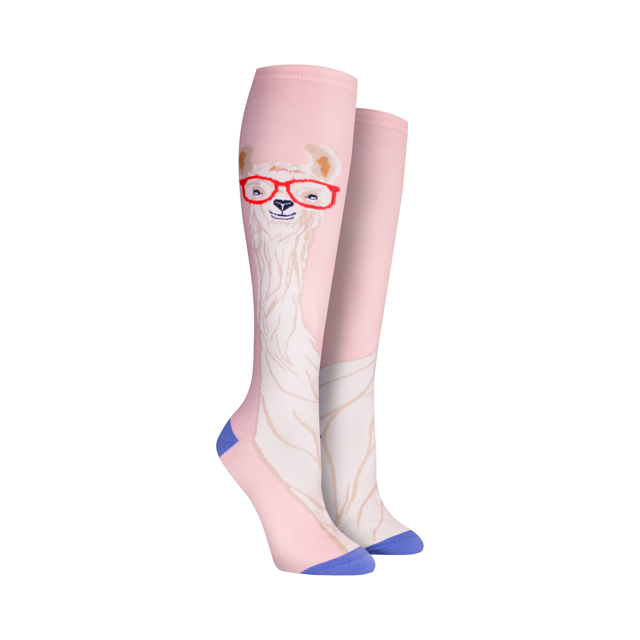 **Llama With Glasses Socks**: Brighten up your day with these knee-high cotton socks featuring a pattern of adorable brown and white llamas wearing red glasses. These fun llama socks bring a quirky touch to any outfit and make a great gift for animal lovers.
