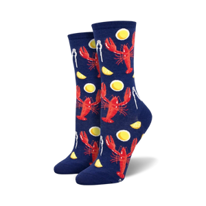 Lobster Dinner socks: Get ready to dive into a feast of fun with lobster, lemon, and cracker socks. Picture this: a navy background splashed with bright red lobsters, sunny yellow lemons, and shiny silver lobster crackers. These socks will satisfy your seafood craving. Plus, slipping them on is like treating your feet to a delicious meal. Lobster Dinner socks are a quirky choice for seafood lovers and those who appreciate a pop of color in their wardrobe. Get ready to catch compliments and smiles wherever you go.