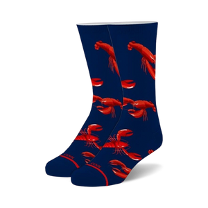 Prepare to get clawed with our new Lobster Crew Socks! These dark blue socks feature a vibrant pattern of red lobsters that will make you the catch of the day. Get ready to dive into a sea of compliments and reel in all the attention. Show your crustacean pride and make a splash wherever you go.