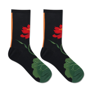 Lotus Floral Crew Socks: These socks bloom with confidence. Unleash the inner flower power with these socks covered in red and green lotuses. Perfect for the lotus lover in your life, they'll add a splash of color to anyone's day. Plus, crew length means they're just the right height for any occasion. Wear these lotus socks and watch your steps blossom with beauty!