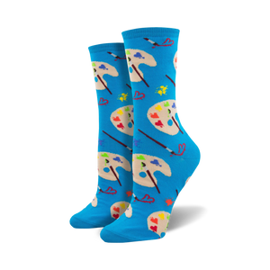 Paint your feet into a masterpiece with our Lovely Art socks! These crew length socks for women are a canvas of creativity, featuring a colorful pattern of paint palettes, paintbrushes, hearts, and paint splatters. Let your feet be a walking art exhibit wherever you go. Put on a pair of Lovely Art socks and step into the spotlight as your feet become a canvas of expression.