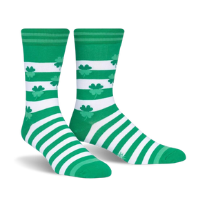 ðŸ€Lucky You 🀠mid-calf crew socks are ready to bring you the luck of the Irish! Our crew length white socks are adorned with cheerful green stripes and four-leaf clovers, the ultimate St. Patrick's Day accessory! Celebrate your Irish spirit in toe-tally adorable fashion. Post a pic on Insta to make your friends green with envy!ðŸ€ðŸ§¦ðŸ’š