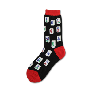 From moody blues to fiery reds and emerald greens, these Mahjong socks are a gaming delight! Suit up in these crew-length wonders and you just might feel like shuffling up some tiles and calling out tiles from the wall. Or maybe they'll bring you luck at the craps table. Either way, these Mahjong crew socks for women are sure to be a winning hand.