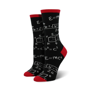 Struggling with algebra? Can't remember your multiplication tables? Don't sweat it, just throw on a pair of these Math Crew Socks. These black socks with red toes, heels, and soles feature gray and white equations and formulas that just might help you ace your next math test. And if they don't, at least you'll look fly trying!
