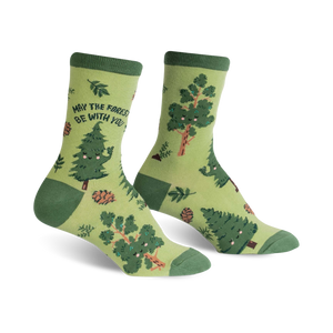 Slip into the wild, funky world of May the Forest Be With You socks! These crew length socks are the perfect companion for any outdoor adventurer. Whether you're hiking, camping, or just kicking back by the campfire, these socks will have you looking like a forest ranger in no time. Just beware of Bigfoot trying to steal them!