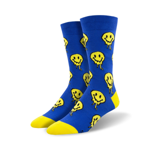 Who says socks have to be dull and boring? With these "Melting Smiles" socks, say goodbye to frown town and hello to funky feet! These smile-inducing socks feature a vibrant parade of cheerful yellow smiley faces melting their way up your legs. Prepare to spread smiles wherever you go, because these socks are sure to turn heads and bring a grin to everyone's face.