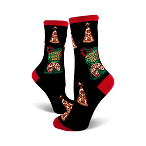 Merry Crustmas 'za fans! These rad socks got pizzazz! They'll make you want to raise the dough all day. The pizza pattern with Merry Crustmas in bright white is so gouda, you'll wanna cheese it up! Hey, don't be so loafing around, buy 'em now or it