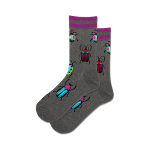 Who says socks can't be a party? Get ready to add some pizzazz to your feet with these metallic bug socks. These cool gray socks are covered in tiny bugs in every color of the rainbow, so you can show your love for nature in a bold, unique way. They're also super comfy, so you can strut your stuff all day long without missing a beat ”just don't step on any real bugs!
