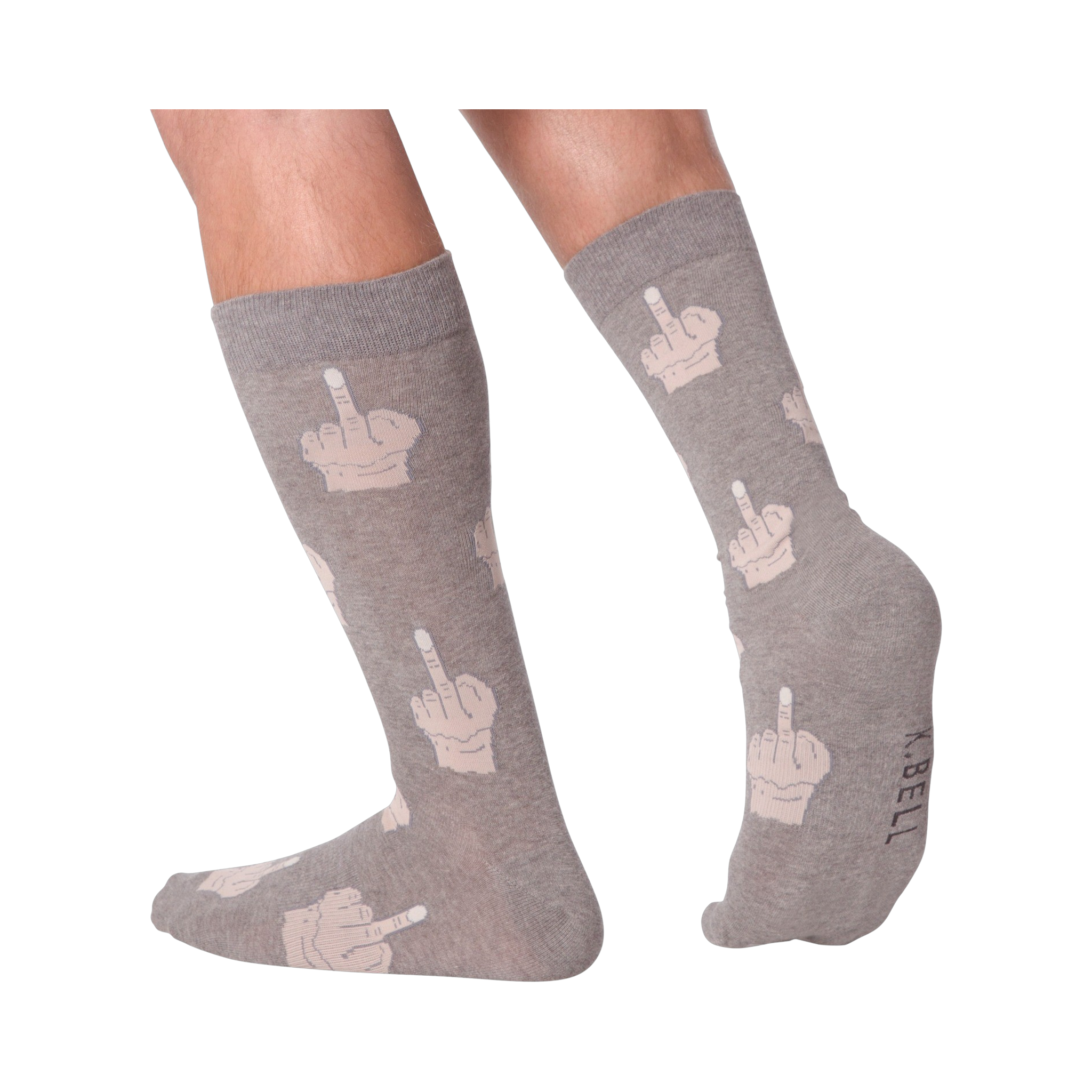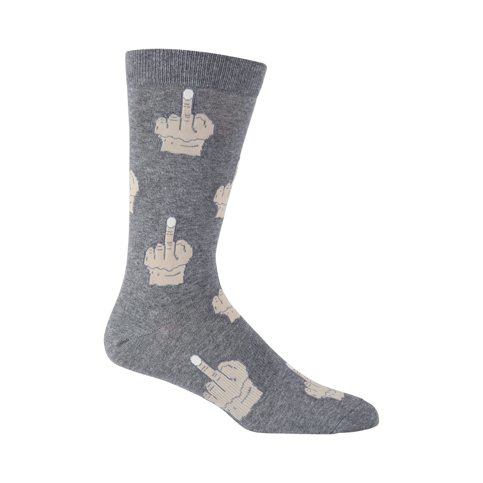 Sometimes you can't quite express what you are feeling with words. It takes great action to get the message across. This funny pair of all gray crew socks will get your point across loud and clear! Each crazy sock features a funny pattern of floating middle fingers. Can't be heard? Flip em' the bird!