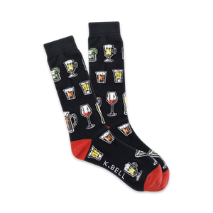 Shake up your style with our Mixed Drink Dreams socks. Featuring a colorful array of cocktails, these socks will have you feeling tipsy without taking a sip. The black color with red toe and heel is the perfect accent for a night out. These crew-length socks are perfect for men who want to add some fun to their wardrobe.