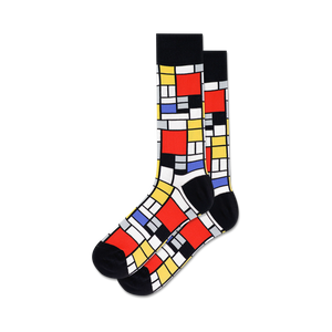 Mondrian's art comes to life on this crew length sock featuring rectangles of red, blue, yellow, and black on a white background. Sure to add a bit of geometric flair to even the most simplistic ensemble. Like Mondrian himself said, "Art is not made to be understood; it is made to be enjoyed."