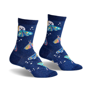 These socks are like a starry sky, with moths fluttering amidst twinkling stars. They'll add a touch of whimsy and wonder to any outfit. Who knew that socks could be so magical?