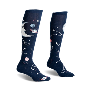 Stargazing isn't just for the night sky anymore. With our Moonshadow knee-high socks, you can carry the wonders of the cosmos wherever you wander. Featuring intricately designed moons, stars, and planets, these socks are a whimsical nod to the universe