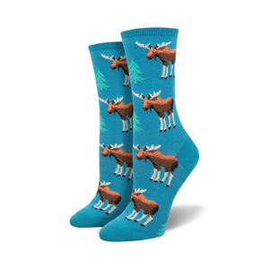 Meet "Moose And A Spruce," the most hilarious and fun socks you'll ever wear! Picture this: Frolic through life with your feet adorned in a mesmerizing spectacle of cartoon moose prancing amidst verdant green spruce trees. The vibrant blue backdrop of these socks will turn your soles into a vibrant canvas of laughter and joy, inspiring you to kick up your heels and dance like no one's watching. So, slip on a pair of these Moose And A Spruce socks, and prepare for an adventure that's wilder than a moose on roller skates!