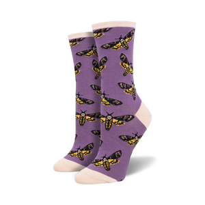 Are you someone who is always drawn to the flames of fashion? Our "Moths to a Flame" women's purple crew cut Novelty Socks feature a fiery moth design that will set your soul ablaze with style. Slip them on and become the envy of the bug world as you strut your stuff, never following the fashion pack but always setting the standard. The vivid colors and impeccable designs are sure to leave your feet feeling happy and looking fly. Let your toesies do the talking in these spunky purple moths!