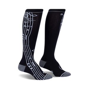 Unleash your inner music maestro with these lively Music Is My Forte knee-high socks for women! Let your feet hit the right notes with a repeating pattern of white musical notes against a black canvas. These knee-high socks will harmonize perfectly with any outfit, whether you're rocking out on stage or just jamming in your living room.