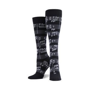 Let's face it, socks can be pretty boring. But why settle for dull when you can kick it up a notch with these rockin' black Music Notes knee high socks? Featuring a lively pattern of white music notes, these socks are anything but ordinary. Whether you're hitting the stage or just grooving around the house, these socks will add a touch of fun to your step. Plus, they're made for both men and women, so you can share the musical love.