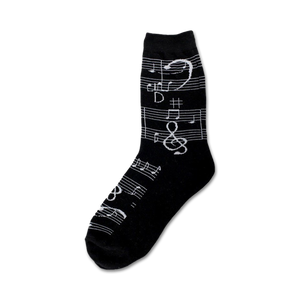 Sock hop to the beat in these Music Notes socks designed just for men. The black crew socks come with a lively pattern of treble clefs, quarter notes, eighth notes, and sharp symbols. So whether you're knocking out a solo, hitting the open mic, or jamming in a bedroom band, you'll always have the perfect tempo on your toes. Fun and funky and a smidge educational, these socks rock!