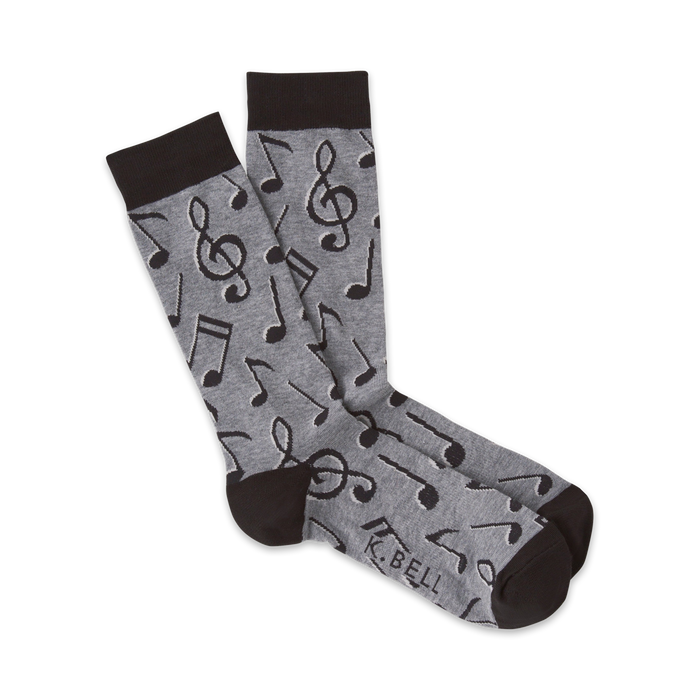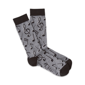 Music Notes socks rock! These fun crew socks for men feature a rhythmic pattern of black treble clefs and eighth notes dancing on a gray background. Whether you're a maestro on the mic or a virtuoso on the viola, these socks will make you feel like hitting the high notes all day long. Put on a pair of these melodic socks when you need a reminder that life is a beautiful symphony.
