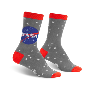 Blast off to new stellar style dimensions with the Nasa Stargazer Glow in the Dark socks! These cosmic crew socks are boldly adorned with a dazzling constellation of twinkling stars, inspiring intergalactic adventures with each stride. As night falls, embark on a celestial journey as the stars magically illuminate, transforming you into the ultimate cosmic fashionista. Stargaze in style and let your feet do the talking - reach for the stars, one sock step at a time!