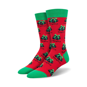 Y'all ready for the sockin' good times of the season? Naughty red socks with their sassy black presents, tied up with green ribbons and topped with a white "naughty" headband, are a holly jolly gift for anyone who knows how to have a good time. These crew-length socks are merry and bright, made just for men, and they're sure to bring all the holiday cheer - who knows, they might even be the present that gets stolen this year!