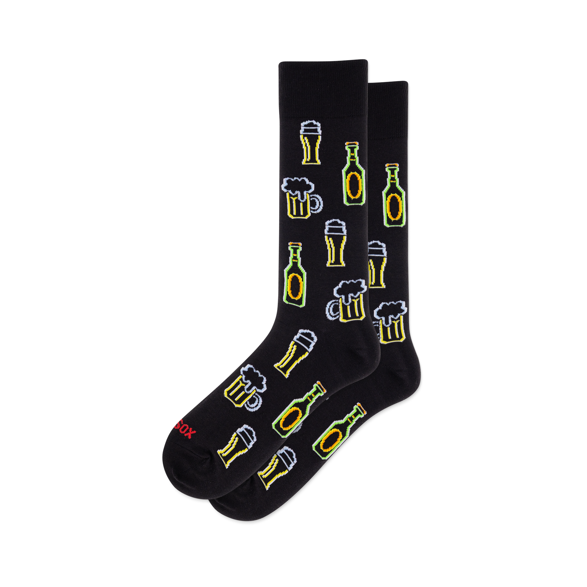 Cold beer, bright outlines, and a pattern that looks right at home in a packed pub or around the couch after a long day. These men's crew socks bring a playful nod to draft pours and bottle service without turning into a costume. The design keeps things clean and graphic, so the beer theme reads clearly from across the room and still feels easy to wear.