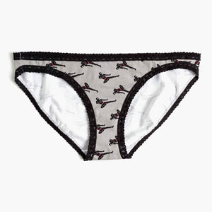 It's no surprise that wearing a pair of these cute ninja knickers will have you feeling like you're a warrior of the night. This cool pair of really stealthy hipster panties will make you blend into the shadows in style. Each fun pair comes in all gray with black lace trim and features a kicking ninja pattern throughout. All that's missing are your trusty throwing stars!