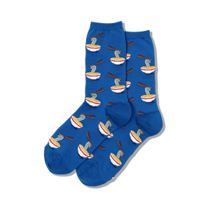 Who needs boring old socks when you can have bowls of yummy noodles at your feet? Our Noodles Crew Socks are covered from heel to toe in ramen patterns, making them the perfect pick for when you have a craving that just won't quit! With these cheeky socks on, you might even start craving a pair of chopsticks to help shovel them down the hatch. You know you want to add a pop of fun to your feet, so why wait? Dive into a pair of these flavor-full socks today!