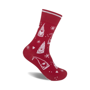 Celebrate the season of giving and joy with our Nordic Tomte socks! These cozy crew socks feature a pattern of adorable Tomtes, decked in their red hats and shirts and carrying gifts. The red, white, and blue design is detailed with snowflakes and hearts. Whether you're gifting them to a loved one or treating yourself, these socks will warm your feet and your heart with their festive charm!
