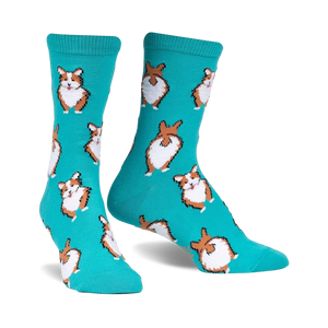 Picture this: a pair of socks so irresistibly cute, they'll turn heads, paws down! Slip into these Nothin' Butt Corgis crew socks and prepare to unleash a symphony of tail wags and smiles. With their vibrant blue canvas and a parade of fluffy corgi butts, these socks are a celebration of life's most joyful floofs. Each corgi is rump-shakin' in unison, their tails perked up like tiny antennas. Grab a pair and embrace the pure, unadulterated joy of a corgi conga line dancing on your feet!
