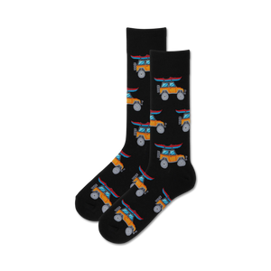 Off-Road Adventures with Your Feet: These 4x4 crew sock will take you on off-road adventures without leaving your house. These socks are covered in four-wheel drive vehicles with surfboards strapped to their roofs. Whether you're hitting the trails or just cruising around, these socks will let everyone know that you're ready for anything. Fun fact: the largest 4x4 rally in the world is held in Poland every year.