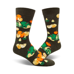 Tis the season for pumpkins and gourds! Spice up your sock collection with our "Oh My Gourd!" crew socks. Featuring a dark backdrop with pops of orange, yellow, and green, these socks will turn any fall outfit into a festive ensemble. Each pair of socks showcases a colorful pattern of these favorite fall symbols. With these festive kicks, all you need is a pumpkin spice latte and a hayride!