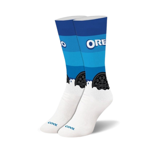 Channel your inner cookie monster with our Oreo Dunk socks! These white, blue, and black socks feature a delightful pattern of Oreo cookies complete with their signature white filling and the word "Oreo" written in blue. Slip them on and let the playful energy of these socks liven up your day, reminding you that life is as sweet and dunkable as an Oreo!