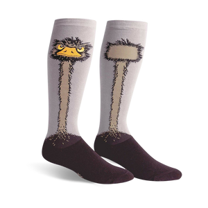 Ostrich socks are the key to unlocking your hidden flamboyance. You won't bury your head in the sand when it comes to style with these gray socks featuring a long-necked, big-beaked flighted bird that's trending all over the internet.