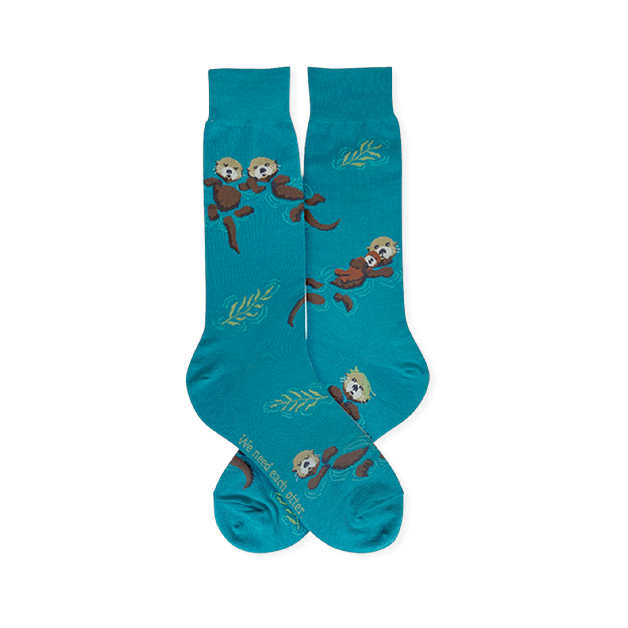 Otters have a way of making everything look more relaxed, and these men's crew socks capture that easygoing charm in a playful all-over design. Small otters drift across the fabric with floating leaves and ripples, creating a scene that feels lively without being loud. The result is whimsical, but still neat enough to wear beyond a novelty moment.