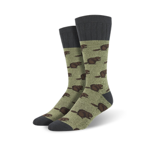 Picture this: deep in the heart of the Outlands, a colony of beavers roam free, clad in dapper plaid shirts and brimming with rugged charm. These beavers aren't your average rodents; they're adventurers, explorers, and masters of the great outdoors. Our Outlands Beaver socks bring these furry icons to life with their olive green hue, featuring a whimsical pattern of these plaid-wearing beavers standing tall against a backdrop of lush greenery. They're an ode to the wild spirit within us all, a reminder to embrace the call of adventure and explore the hidden wonders that await us beyond the city limits. Whether you're traversing rugged mountain trails or taking a leisurely stroll through the park, these socks will keep your feet cozy while adding a touch of whimsy to your step.