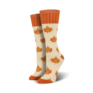 Outlands Maple Leaf socks: Maple through and through! Sporting an autumnal orange shade and showcasing an intricate, eye-catching pattern of North America's famous fall trees, these Canadian-inspired socks will have you strutting through life like a lumberjack on a brisk fall day. Plus, the spacious boot length will keep your feet toasty all season long!
