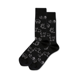 These Outline Cat crew socks are perfect for cat lovers who want to add some fun and personality to their everyday wardrobe. Featuring a black background with a pattern of white cats in various poses, these socks are sure to turn heads wherever you go. Embrace your inner feline with these 'meow-velous' socks!