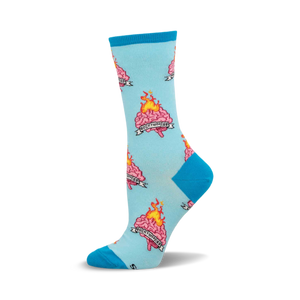 Ever feel like your brain is constantly on overdrive? These Overthinker socks capture that exact feeling with a playful twist. Featuring a vibrant pink brain ablaze and the word "Overthinker" emblazoned on a banner, these blue socks perfectly illustrate the mental marathon that never seems to end. Perfect for those who wear their thoughts on their sleeveor in this case, their feet.